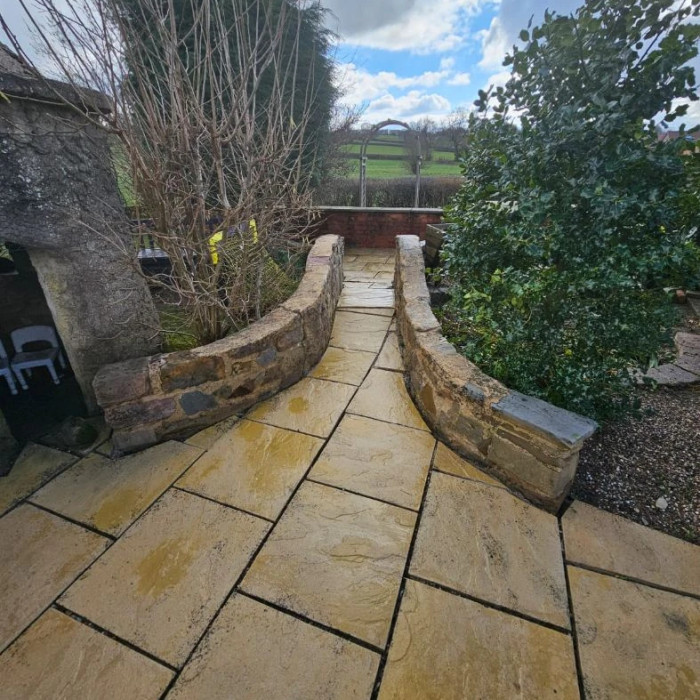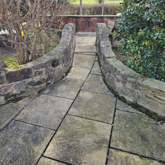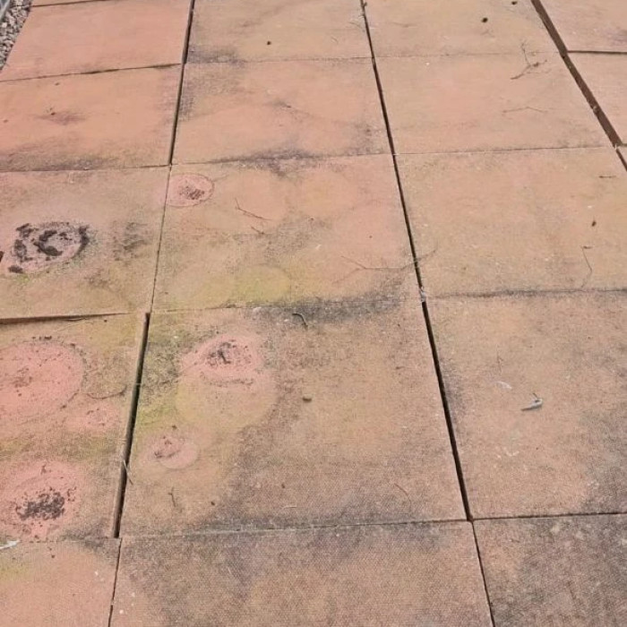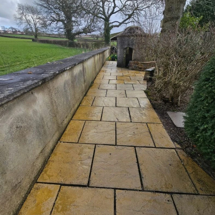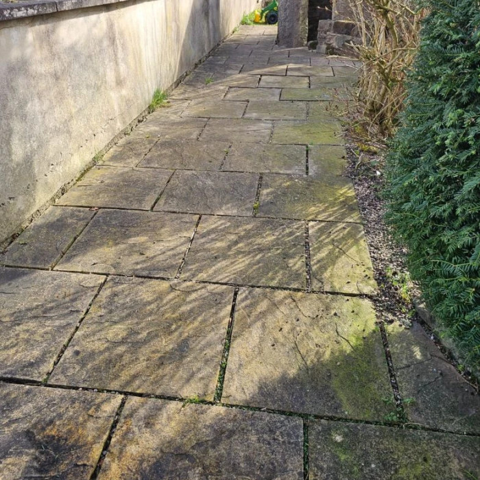 Concrete slabs after professional cleaning - deep-cleaned to remove layers of dirt, moss, and stains, resulting in a noticeably brighter and more attractive surface.