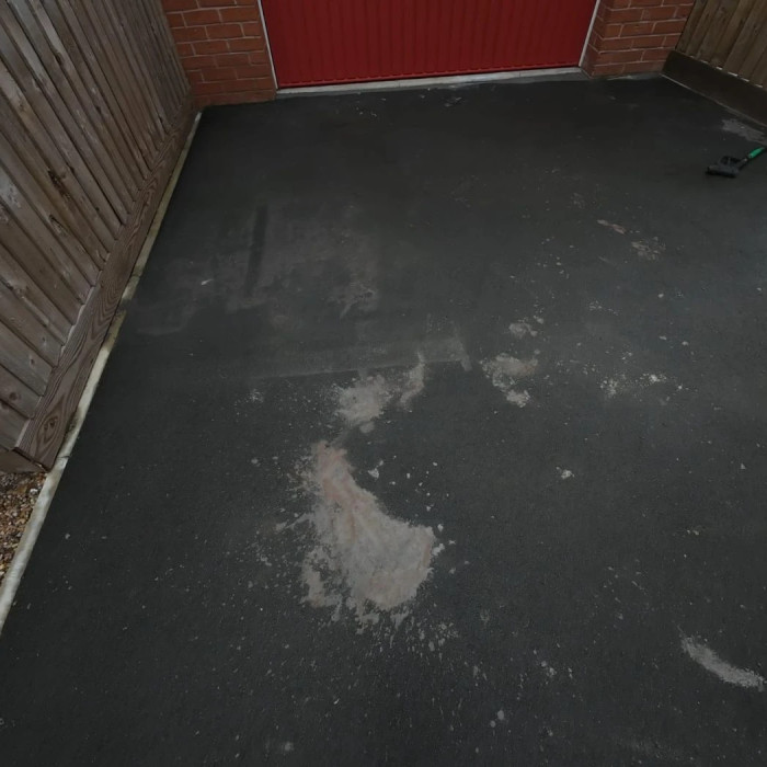 The surface may look tough, but it’s actually quite soft and sensitive to pressure and heat. These photos show how even a small oil or cement stain can stand out – and how much cleaner and sharper it looks once treated with care. Getting it right is all about patience and the right technique.